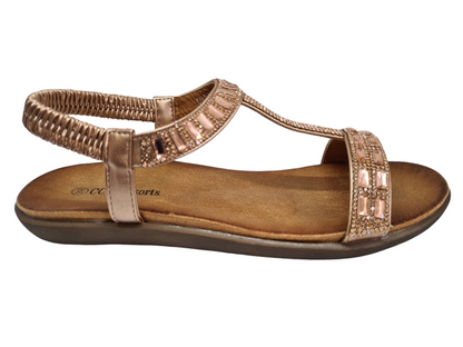Usha is a fabulous slip-on sandal, versatile enough to take you from dawn 'til dusk! USHA features a stunning beaded-bling upper, cushioned footbed with metatarsal support and a simple elastic back strap - giving you that glamourous, resort-style vibe!