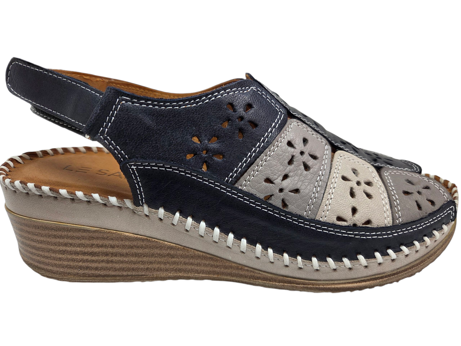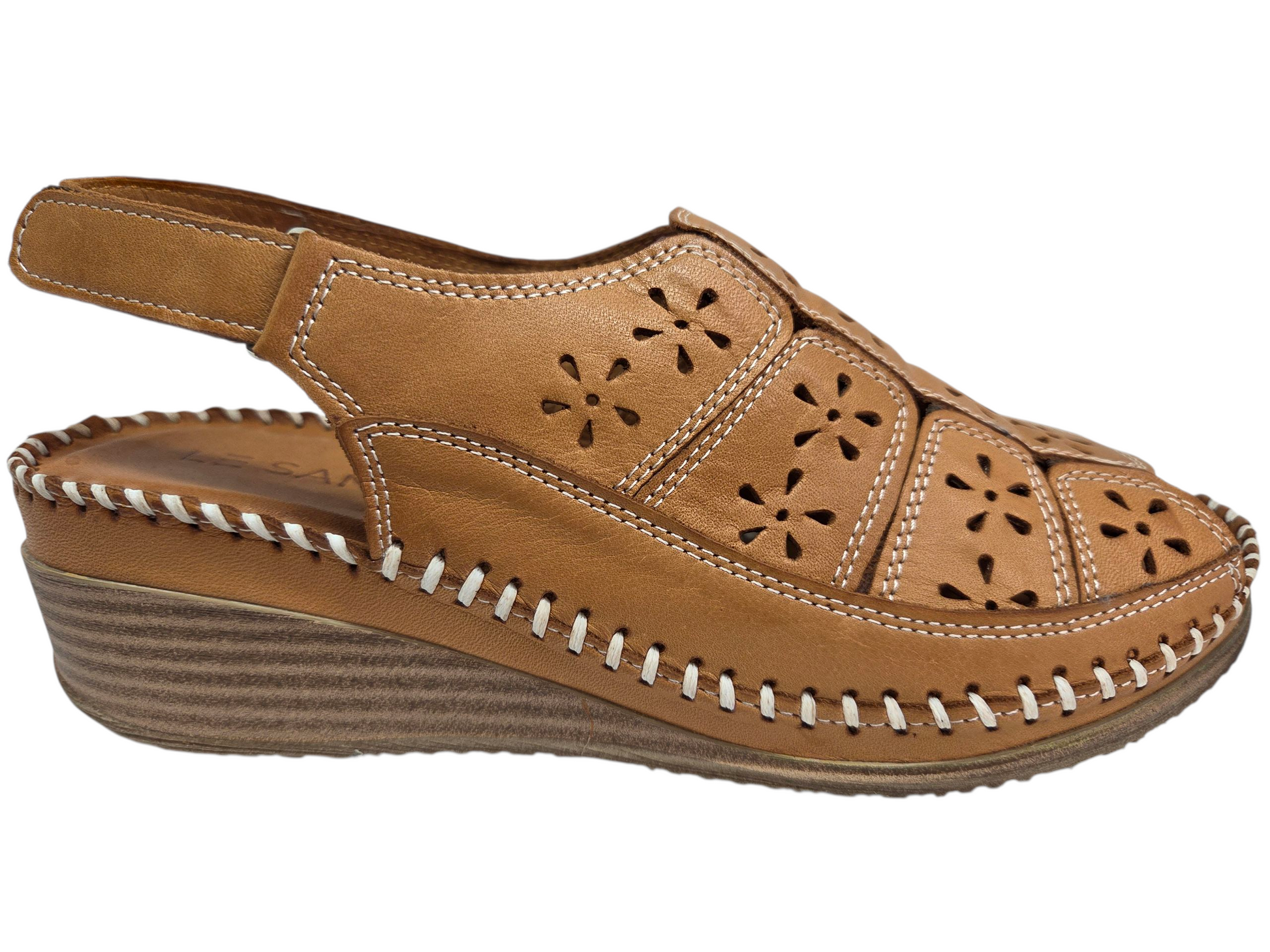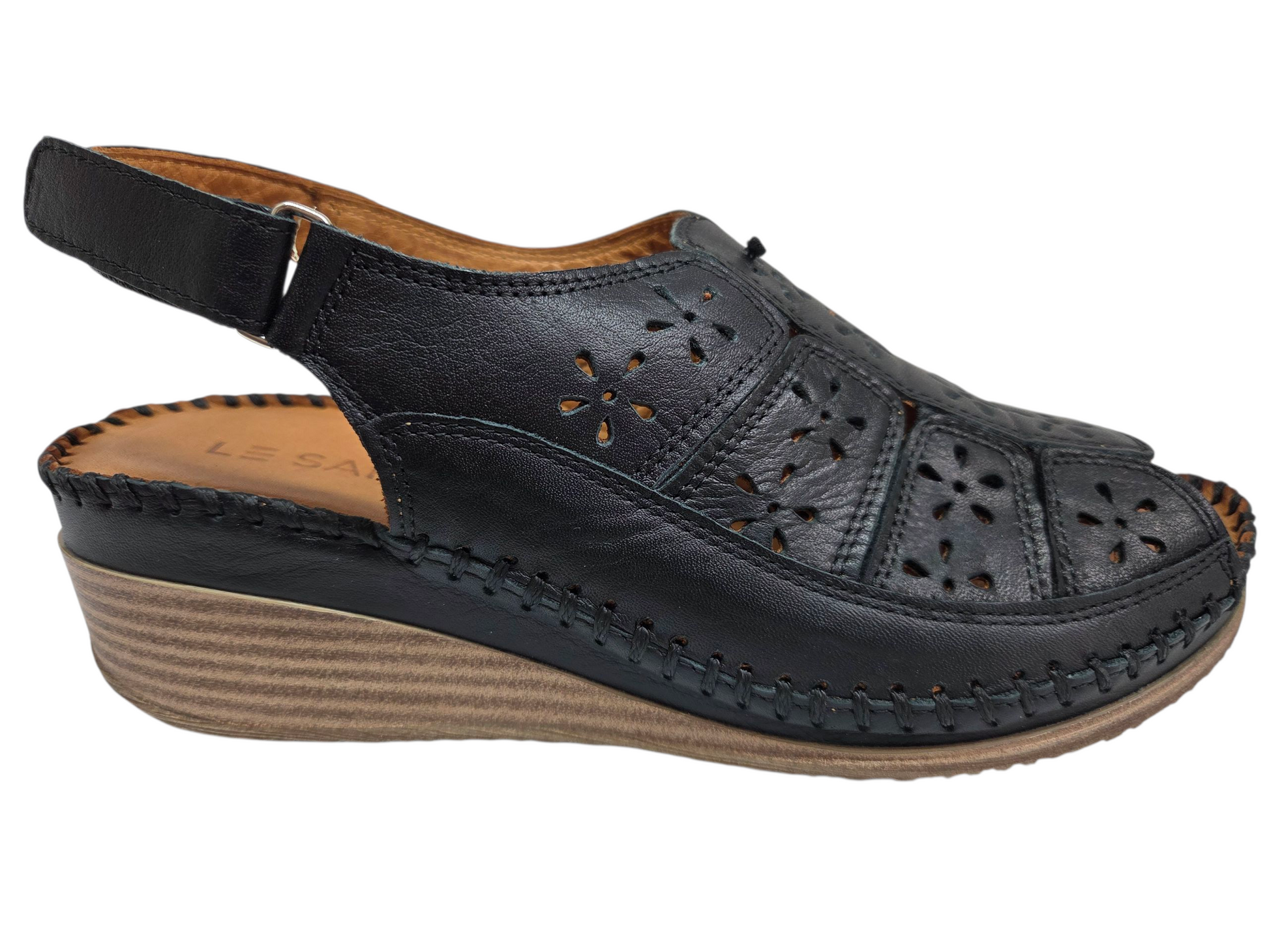 Kirra by Le Sansa is a stylish sandal crafted for comfort and everyday wear. Featuring a soft leather upper with delicate cut-out detailing and contrast stitching, it offers both elegance and durability. The adjustable slingback strap provides a secure fit, while the cushioned footbed and low wedge heel ensure all-day comfort.