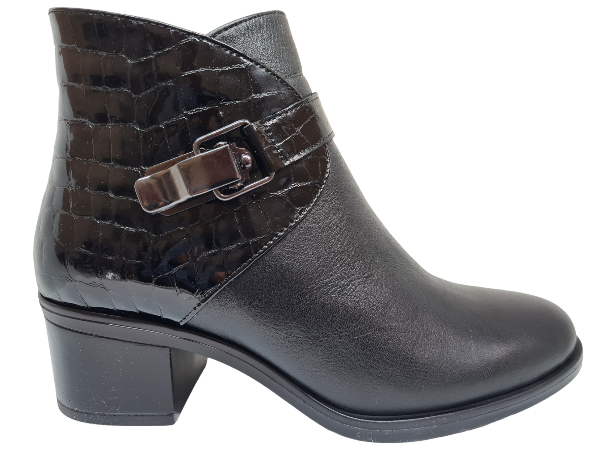 The stylish Paris ankle boot by Mago is finished in premium quality leather with a Croc patent detail around the ankle and a buckle strap to complete the look